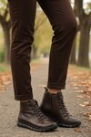 Kahve Hakiki Deri Lastik Bağcıklı Kadın Bot 3910 Z