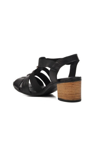 Venüs Siyah Hakiki Deri Kadın Topuklu Sandalet