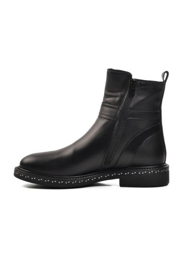 Siyah Fermuarlı Hakiki Deri Kadın Bot 9398 Z